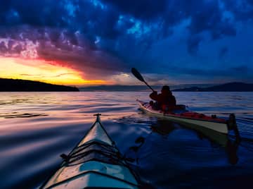 Begin with a waterfront lunch at Dolphins Bar & Grill and a guided wildlife cruise through the Banana River Lagoon. The next evening, enjoy dinner before a bioluminescent kayaking eco-tour, where tiny organisms light up the dark lagoon in electric-blue trails with every paddle stroke. Round-trip event transportation is included both days.